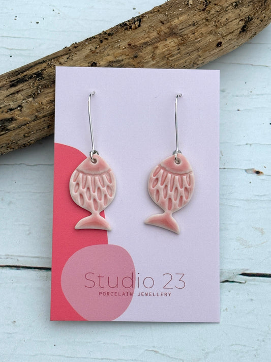 Beautiful Handmade Glazed Porcelain Fish Drop Earrings