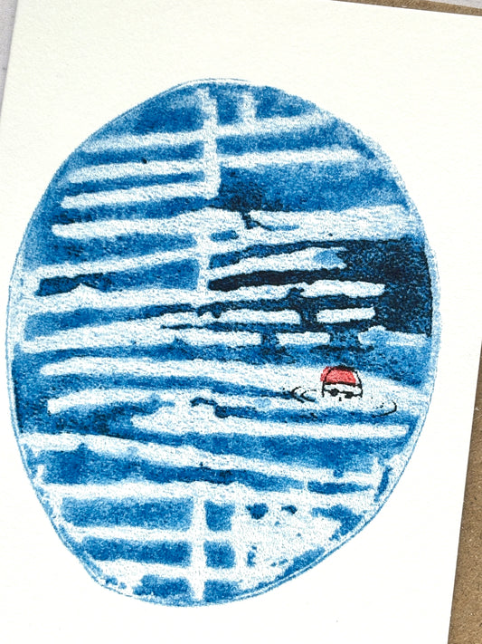 Sea Swimmer Risograph Mini Greetings Card