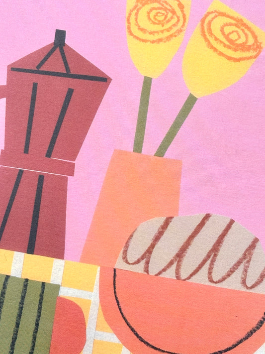 Coffee Break with Flower Art Greetings Card