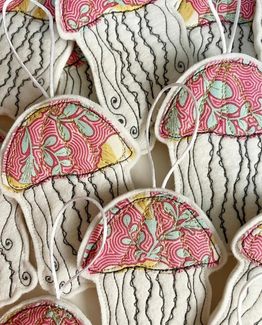 Fabric Embroidered Decorations: Seagulls, Seal, Crab, Ice-Cream, Jellyfish