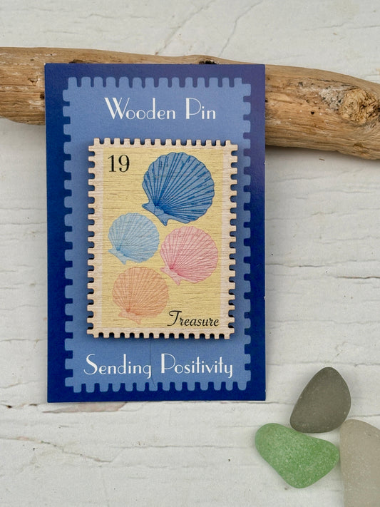 Sea Shells Treasure Cone Wooden Stamp Pin