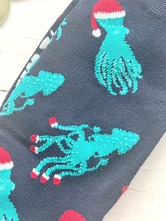 Christmas Octopus & Squid Bamboo Mens Socks -Size 7 to 11
