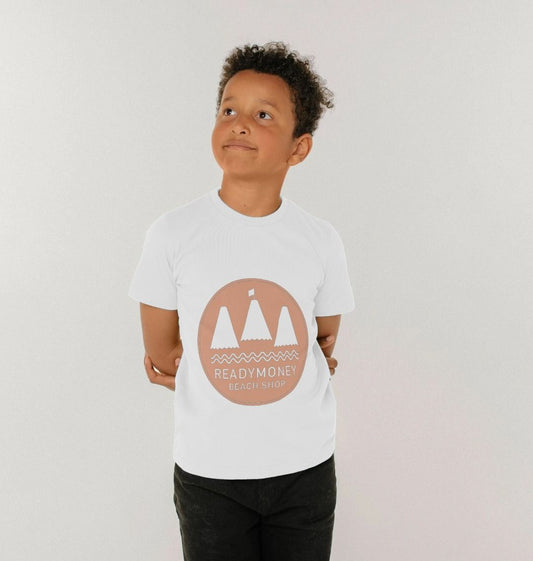 Kids White Organic Tee With Blush Pink Readymoney Beach Shop Logo T-Shirt