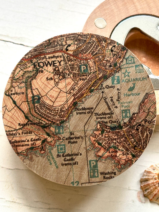 Wooden Fowey Magnetic Map Bottle Opener