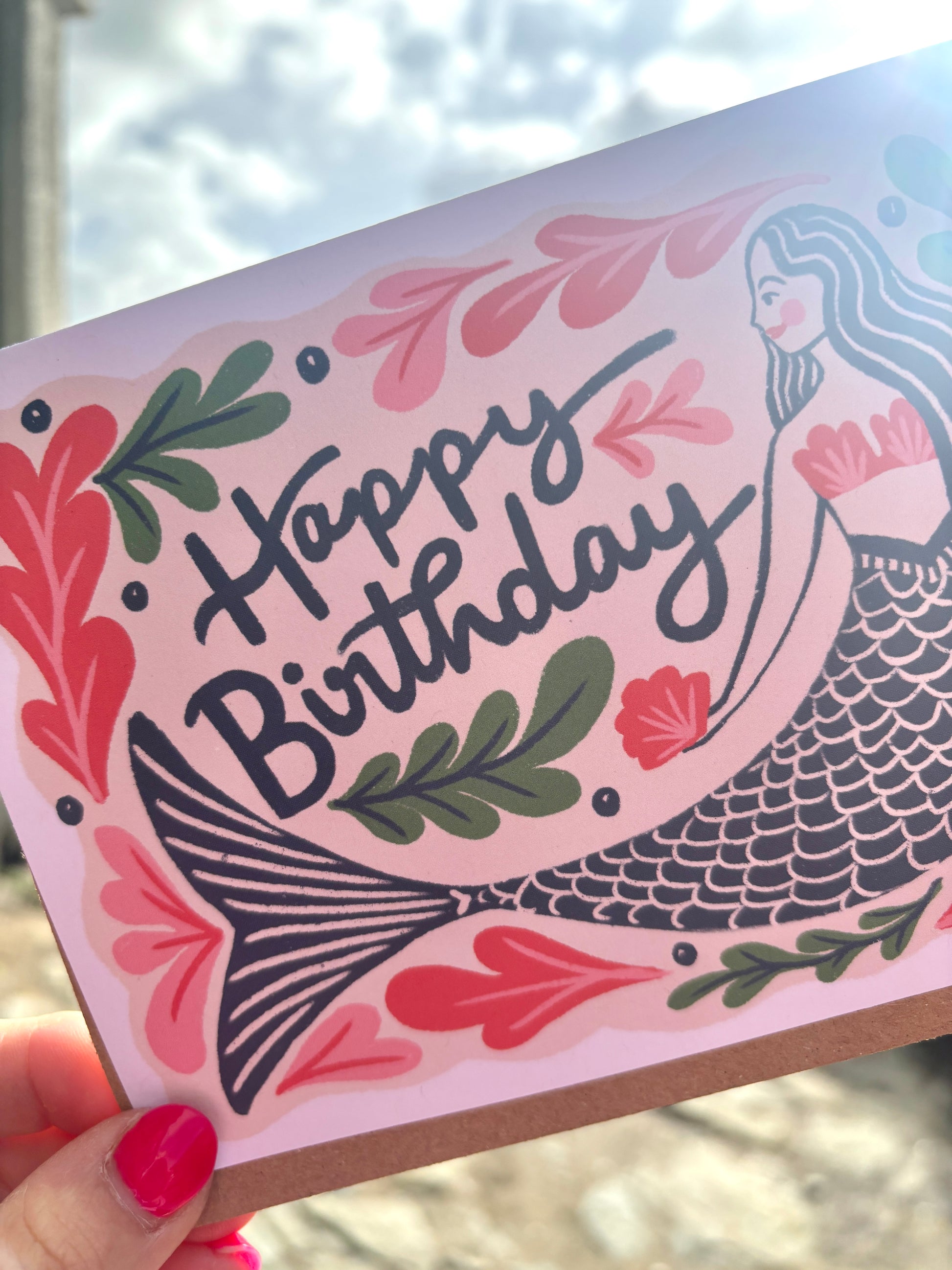 A gorgeous birthday card for a fan of sea swimming, happy birthday mermaid!
