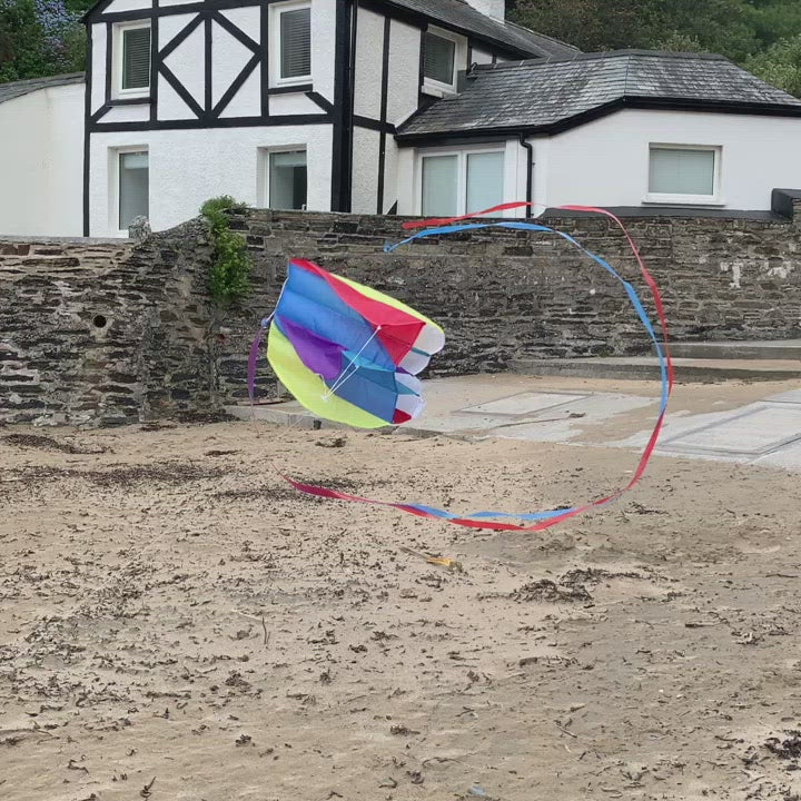 These pocket sized parafoil kites are the perfect stocking filler or small gift. These multicoloured kites dance beautifully in the wind.
