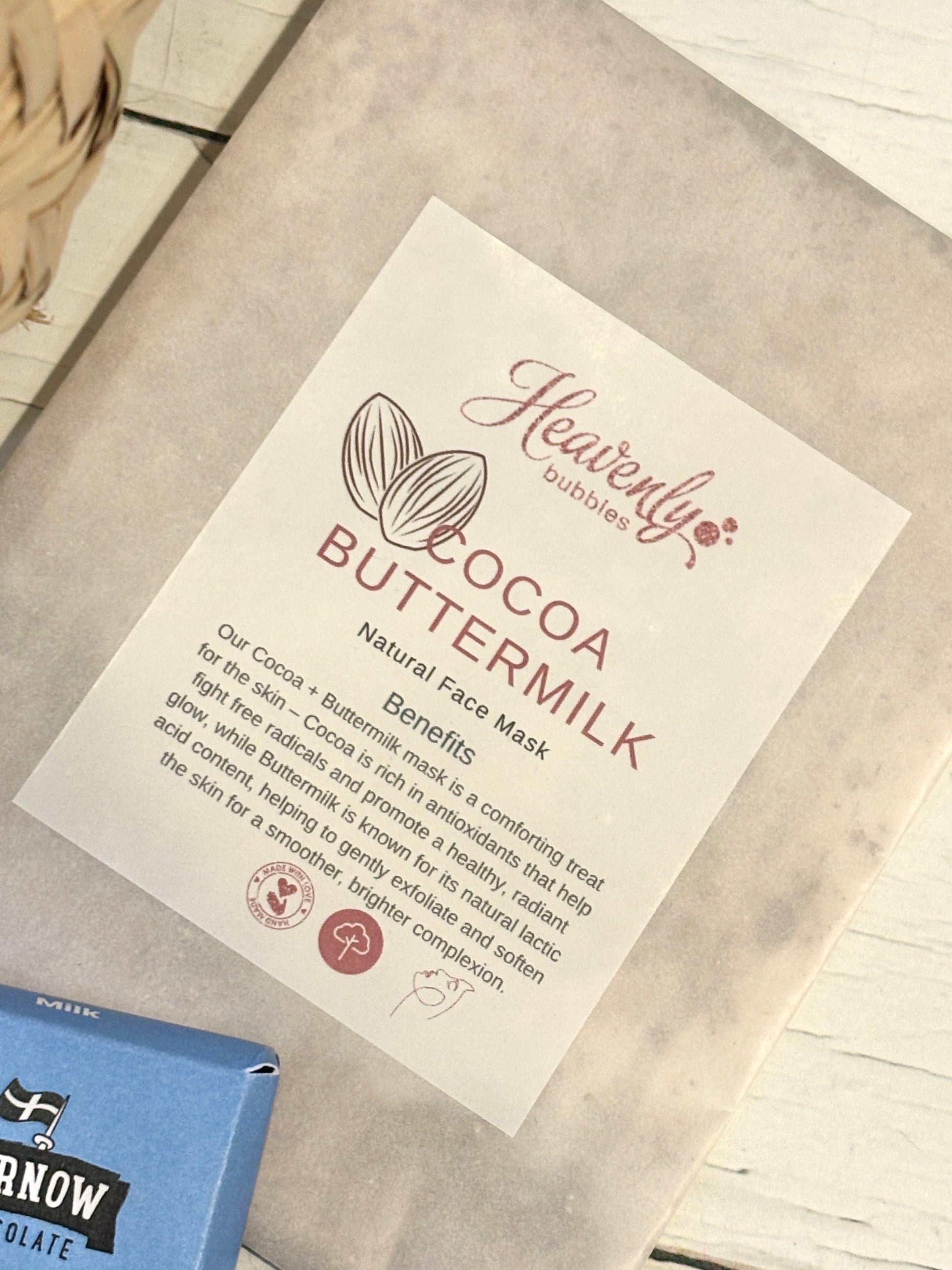 - A relaxing mineral face mask powder sachet, choose from cocoa & buttermilk or green tea & kaolin